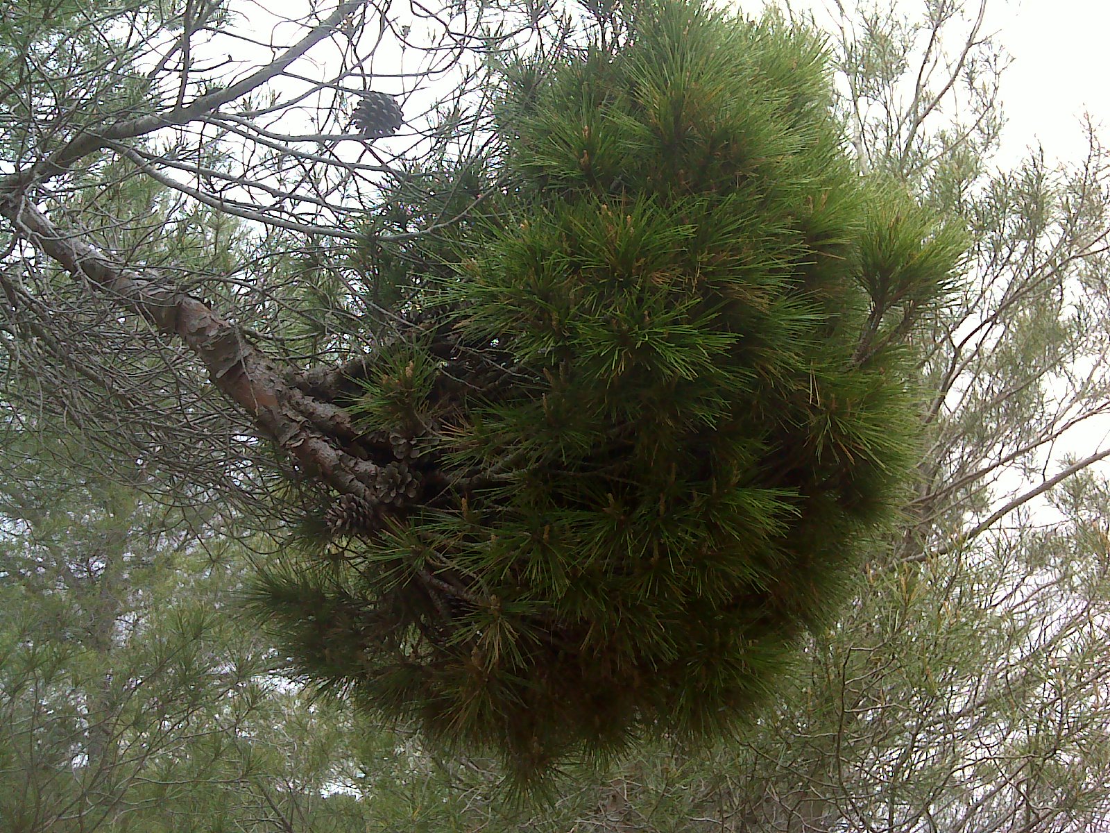 On en rencontre parfois sur nos chemins sur les pins. Ce n'est pas du gui qui est une plante par elle-même. Là, il s'agit d'une excroissance de l'arbre d'origine. c'est une maladie de l'arbre.