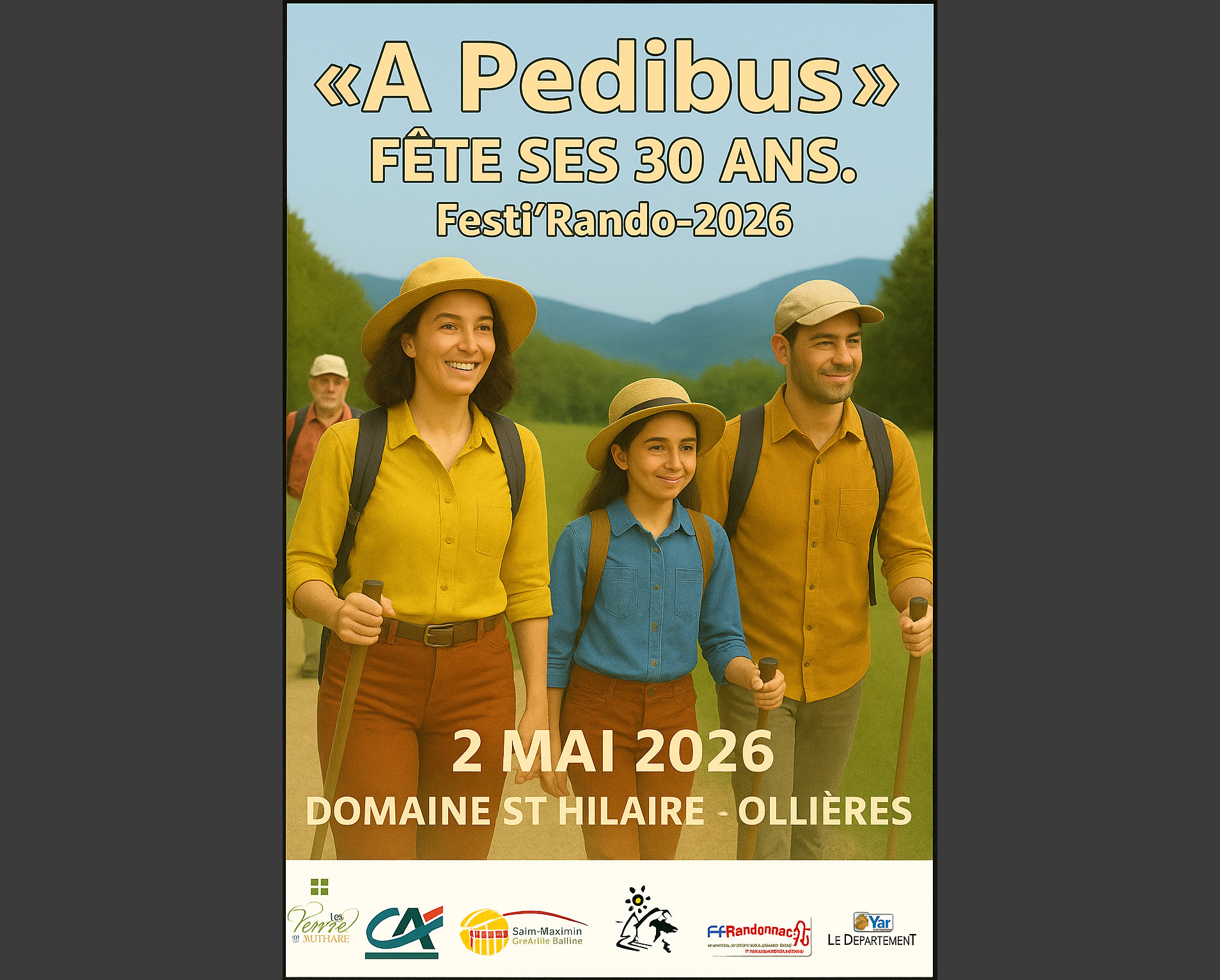 Par ailleurs, notre Président Daniel DEPETRIS, nous a fait part du souhait du Président du Comité Départemental de la Randonnée Pédestre du Var de relancer les « Fêtes de la Rando » comme cela se faisait dans le passé… aussi, en Co-organisation avec le CDRP83 nous allons essuyer les plâtres et remettre d’actualité les Fêtes de la Randonnée en commençant par St Maximin sous le nom de « Festi’Rando – 2026 »